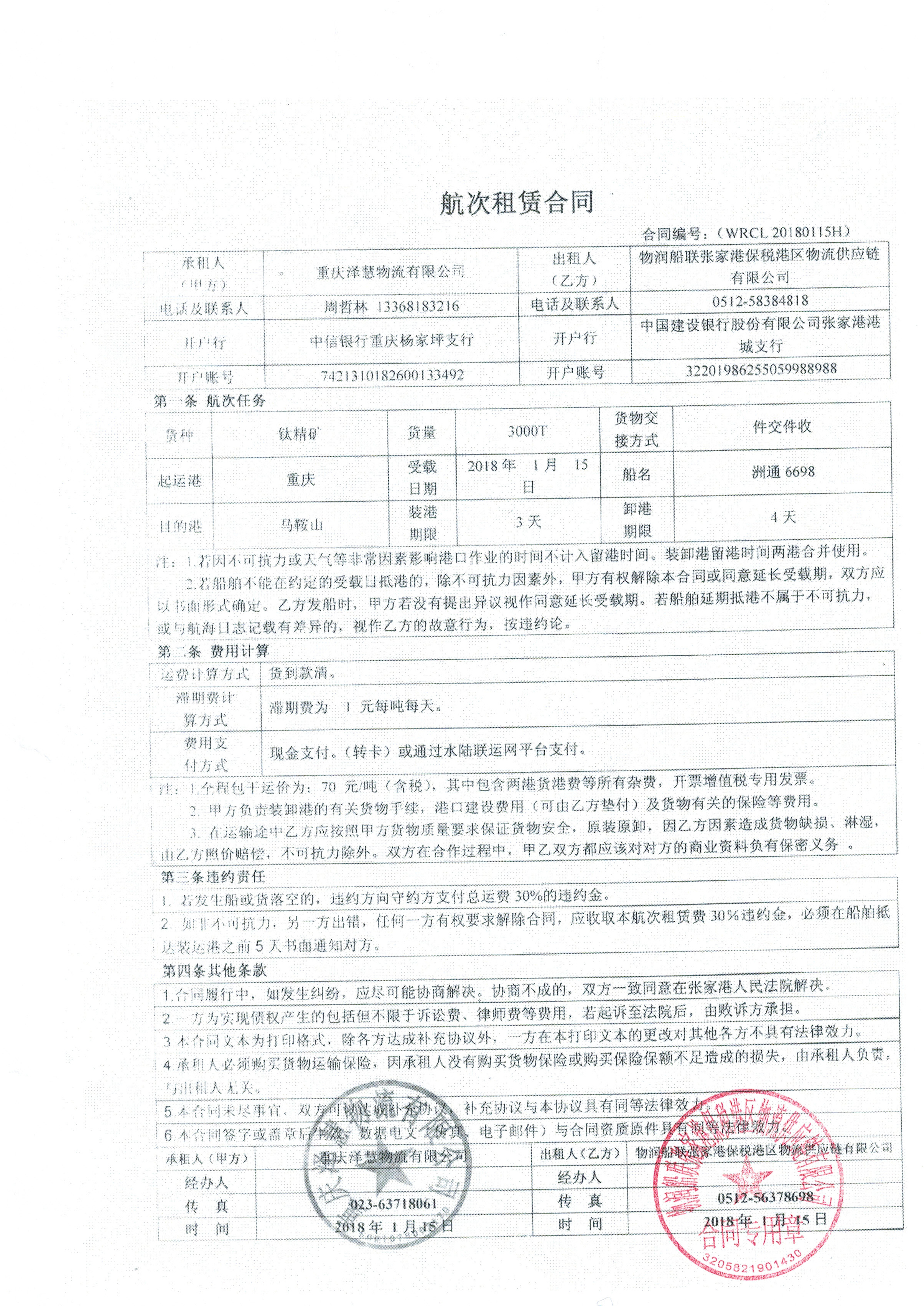 - 结算方式起航0%,抵港0%,回单100%
